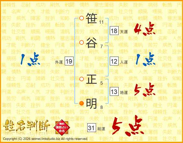 笹谷正明さんの総運は31画の5点!