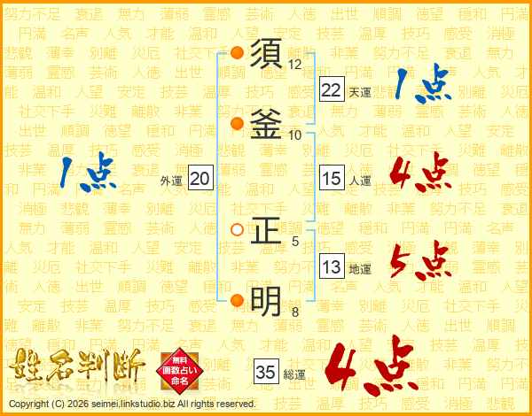 須釜正明さんの天運は22画の1点!