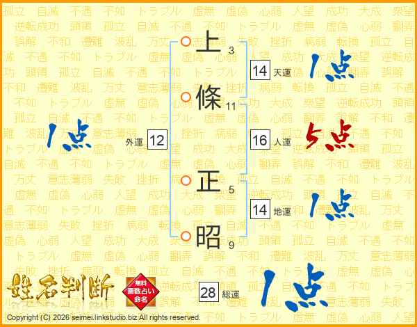 上條正昭さんの天運は14画の1点!