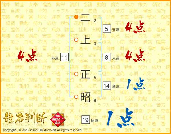 二上正昭さんの総運は19画の1点!
