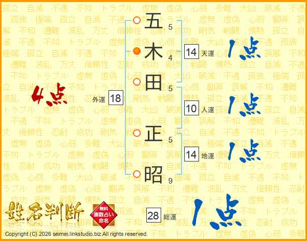 五(5画)木(4画)田(5画) 正(5画)昭(9画)