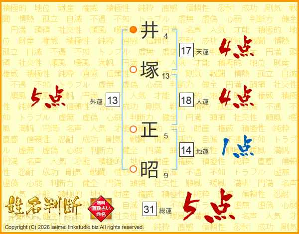 井塚正昭さんの総運は31画の5点!