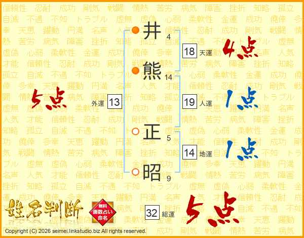 井熊正昭さんの総運は32画の5点!