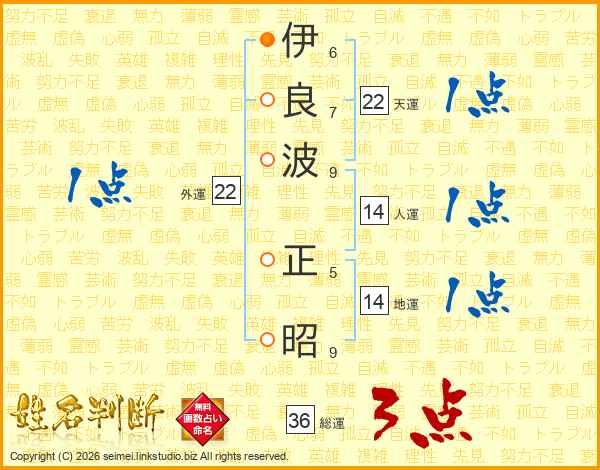 伊(6画)良(7画)波(9画) 正(5画)昭(9画)