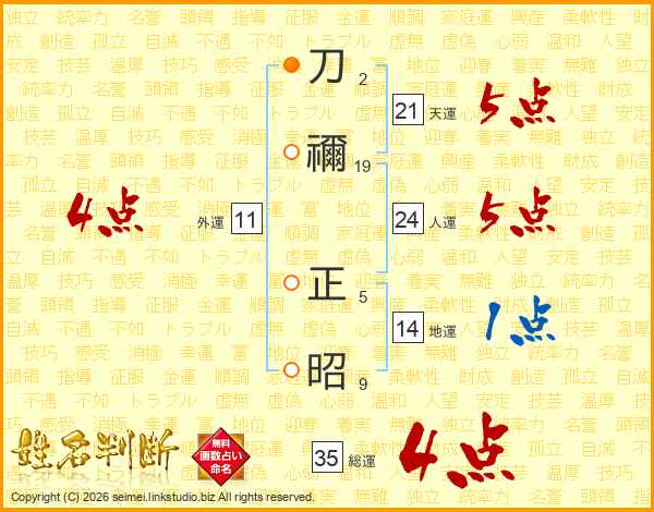 刀禰正昭さんの総運は35画の4点!