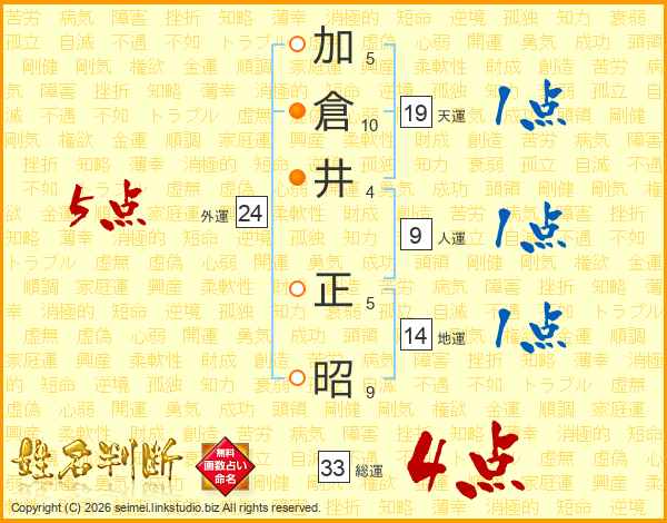 加倉井正昭さんの総運は33画の4点!