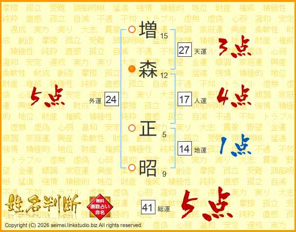 増(15画)森(12画) 正(5画)昭(9画)