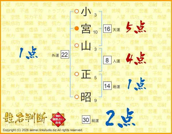 小(3画)宮(10画)山(3画) 正(5画)昭(9画)