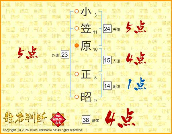 小笠原正昭さんの総運は38画の4点!