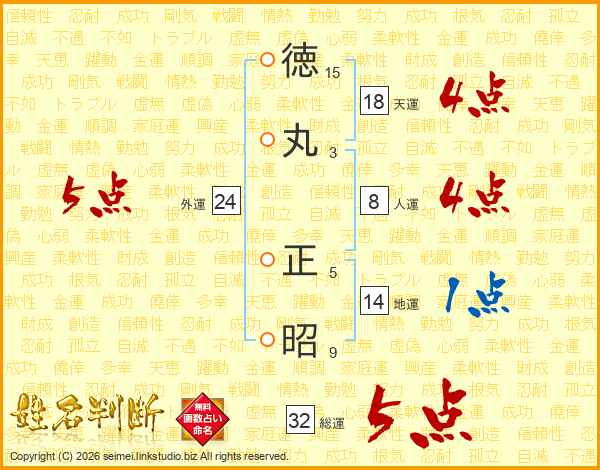 徳丸正昭さんの総運は32画の5点!