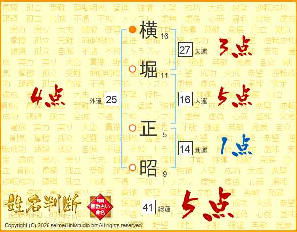 横堀正昭さんの総運は41画の5点!