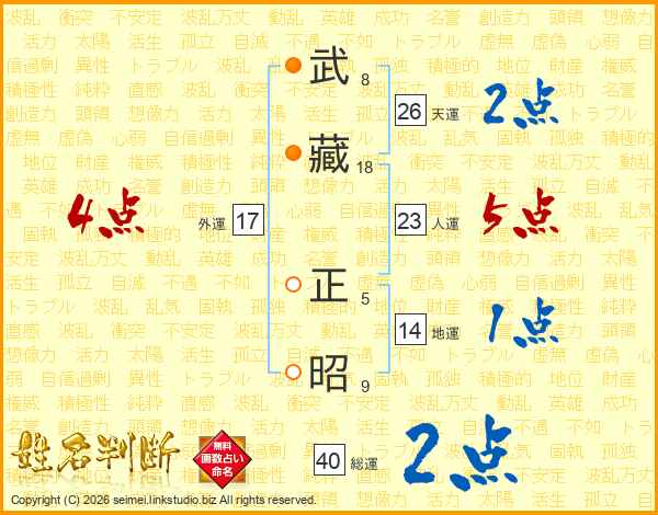 武藏正昭さんの天運は26画の2点!