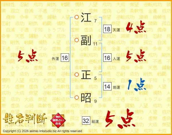 江副正昭さんの総運は32画の5点!