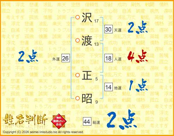 沢(17画)渡(13画) 正(5画)昭(9画)