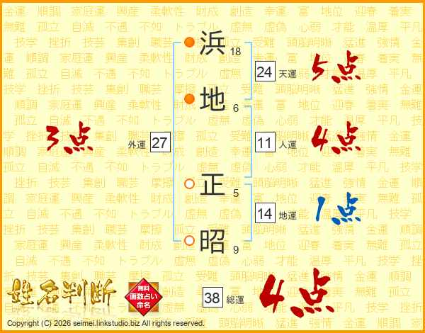 浜地正昭さんの総運は38画の4点!