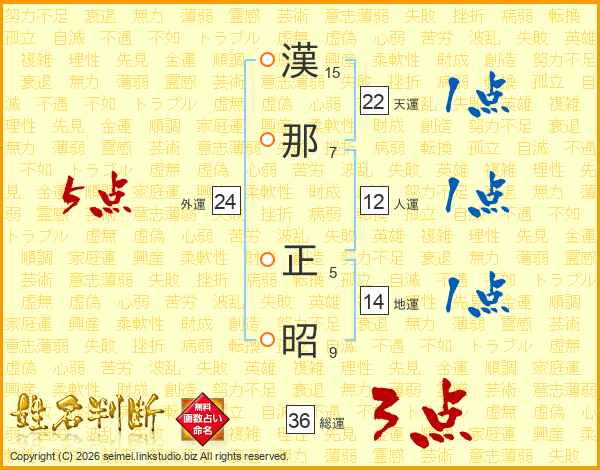 漢那正昭さんの外運は24画の5点!