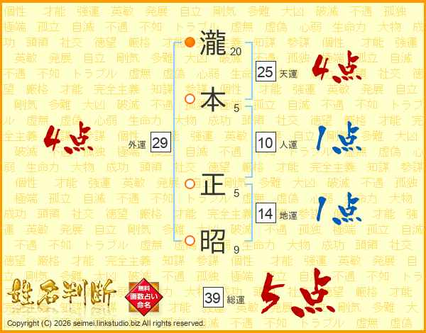 瀧本正昭さんの総運は39画の5点!