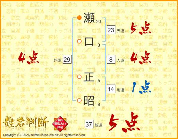 瀬口正昭さんの総運は37画の5点!