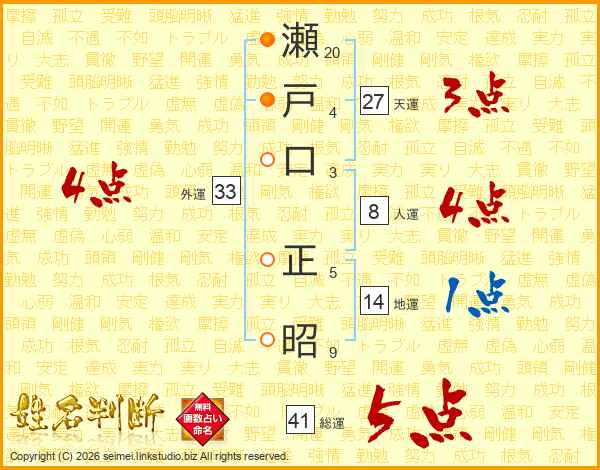 瀬戸口正昭さんの総運は41画の5点!