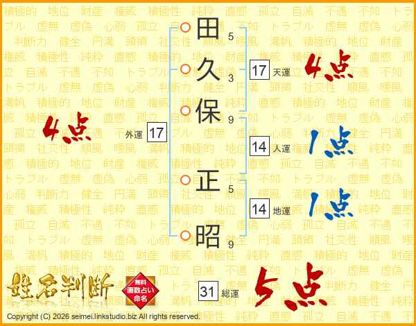 田(5画)久(3画)保(9画) 正(5画)昭(9画)
