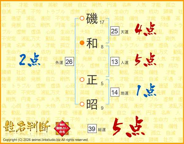 磯和正昭さんの総運は39画の5点!