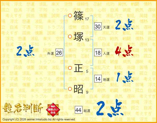 篠塚正昭さんの総運は44画の2点!
