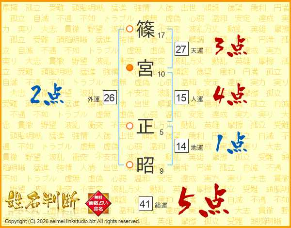 篠宮正昭さんの総運は41画の5点!
