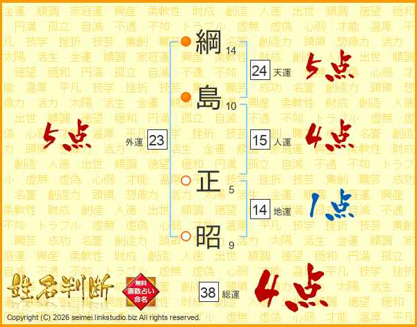 綱(14画)島(10画) 正(5画)昭(9画)