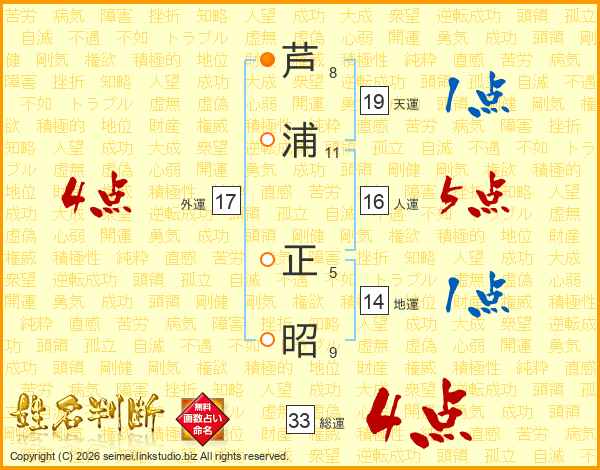 芦浦正昭さんの総運は33画の4点!