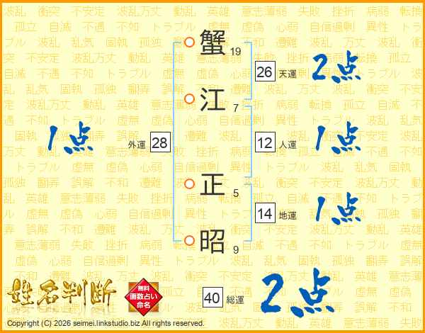 蟹(19画)江(7画) 正(5画)昭(9画)