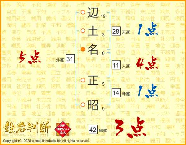 辺(19画)土(3画)名(6画) 正(5画)昭(9画)