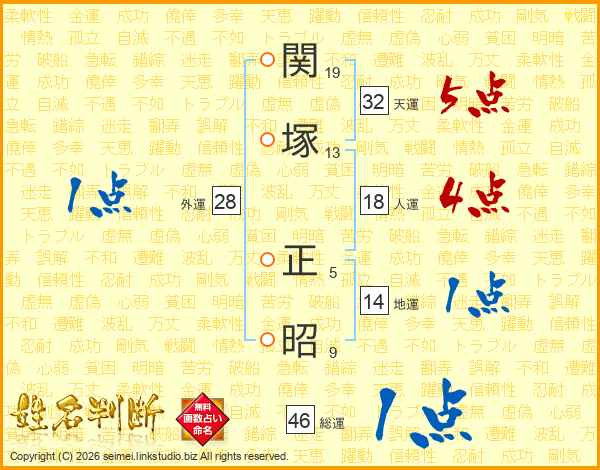 関塚正昭さんの総運は46画の1点!
