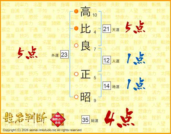 高(10画)比(4画)良(7画) 正(5画)昭(9画)