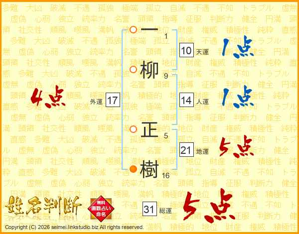一柳正樹さんの総運は31画の5点!