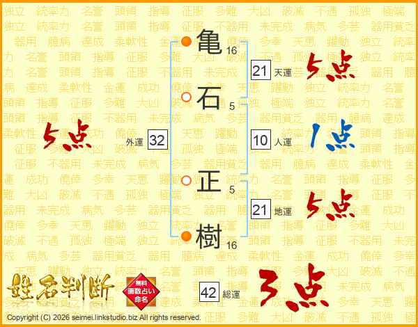 亀石正樹さんの天運は21画の5点!