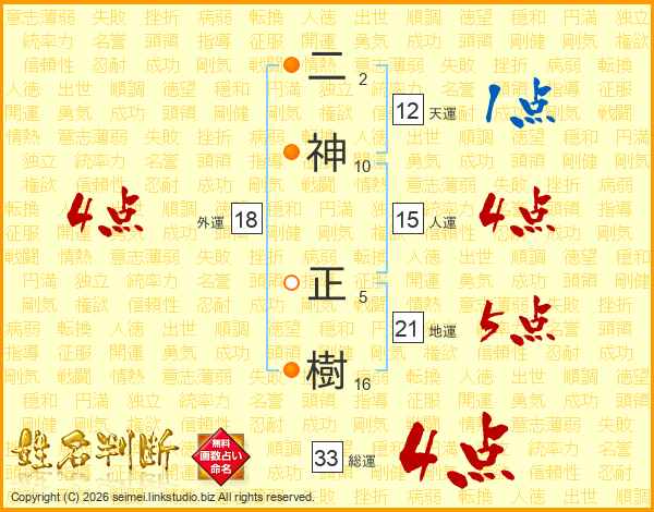 二神正樹さんの総運は33画の4点!