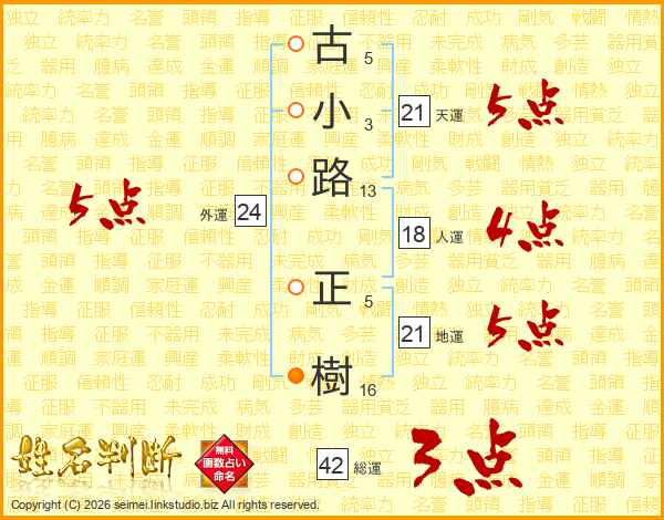 古小路正樹さんの天運は21画の5点!
