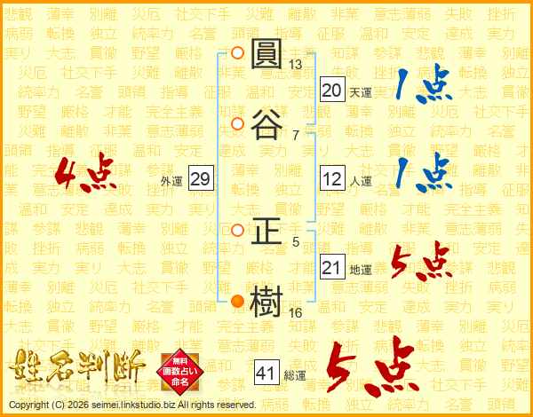 圓谷正樹さんの総運は41画の5点!