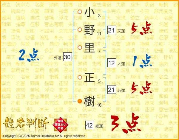 小野里正樹さんの天運は21画の5点!