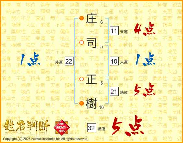 庄(6画)司(5画) 正(5画)樹(16画)