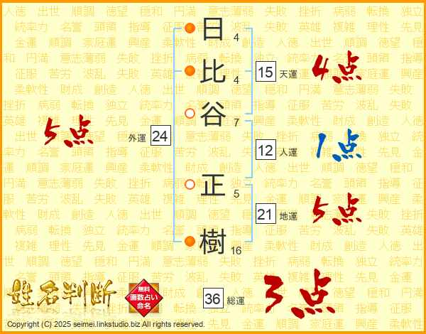 日比谷正樹さんの総運は36画の3点!