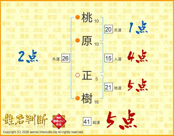 桃原正樹さんの総運は41画の5点!