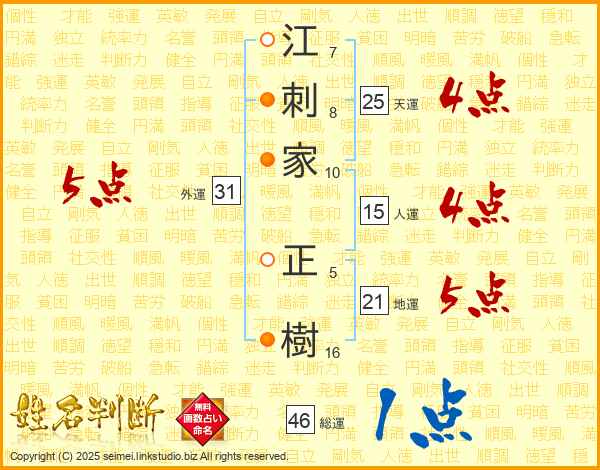 江(7画)刺(8画)家(10画) 正(5画)樹(16画)