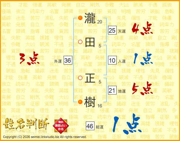 瀧田正樹さんの天運は25画の4点!