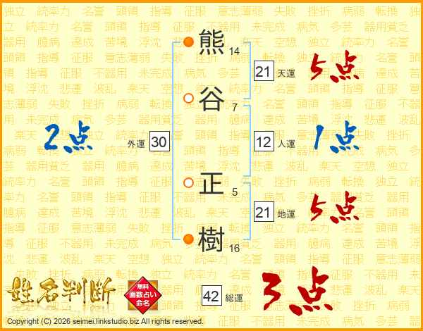 熊谷正樹さんの天運は21画の5点!