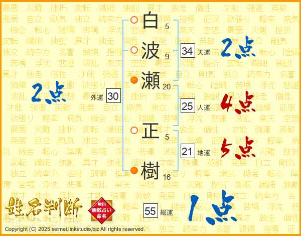 白(5画)波(9画)瀬(20画) 正(5画)樹(16画)