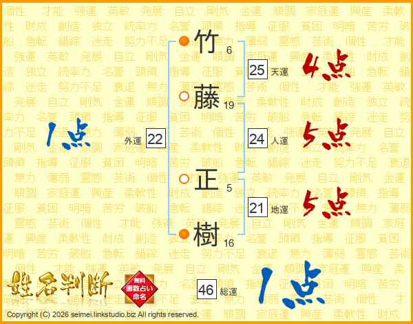 竹藤正樹さんの地運は21画の5点!