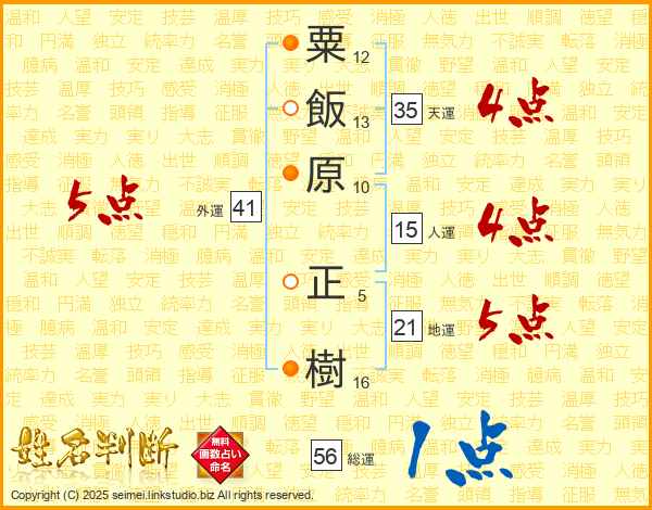 粟飯原正樹さんの総運は56画の1点!