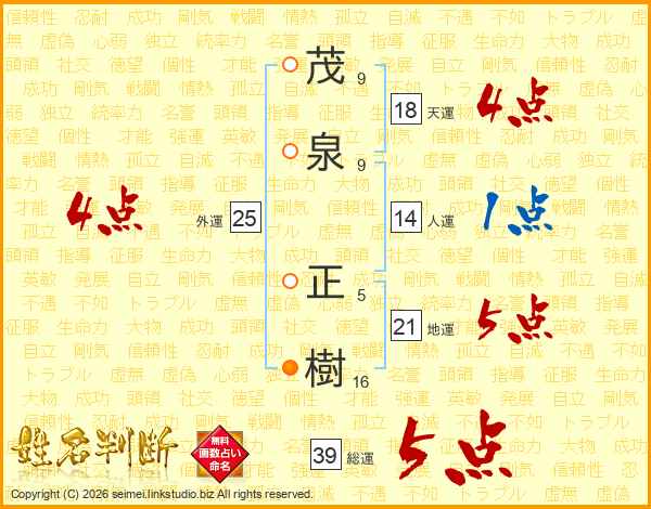 茂泉正樹さんの総運は39画の5点!