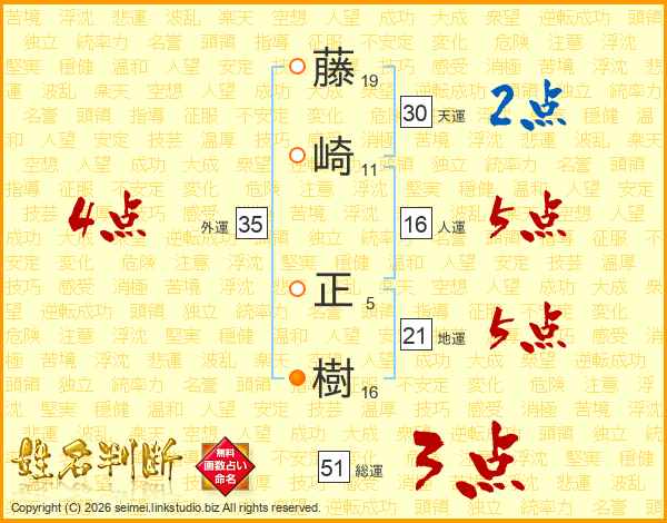 藤(19画)崎(11画) 正(5画)樹(16画)